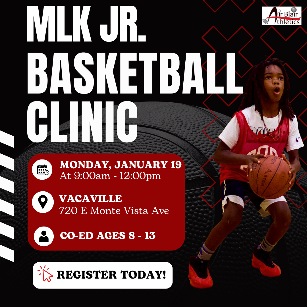 Join us this MLK Day for a one-day basketball clinic offered through the City of Vacaville. This Clinic for boys and girls ages 8–13 will focus on skill development, teamwork, and confidence. Players will enjoy structured drills, games, and positive coaching in a fun, inclusive environment.